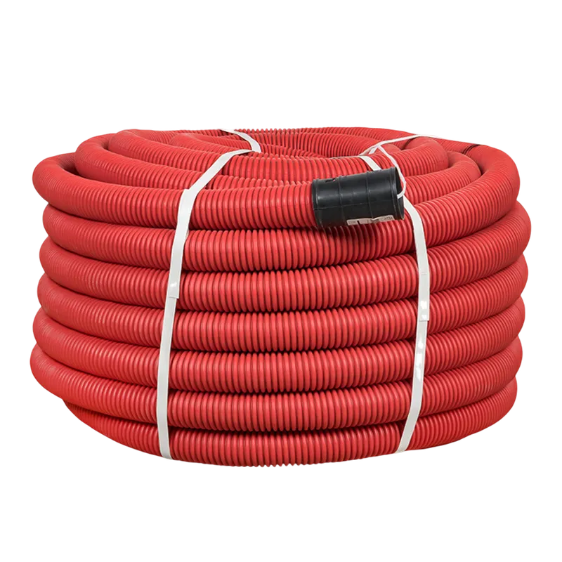 Труба двустенная гибкая 200 красная с протяжкой с муфтой бухта 35м